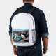 White backpack with Icelandic Puffins on front