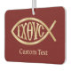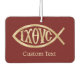 Ichthys or Ichtus Christian symbol. Fish outline with greek letters "ΙΧΘΥΣ". Custom background color. Custom text on both sides.