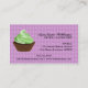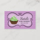 © 2012 Socialite Designs. Our whimsical cupcake bakery business card has a green icing and chocolate cupcake inside a doodle banner frame. The cupcake can be moved, made smaller or larger, or deleted if you would like to add your own logo.