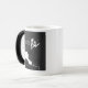Black and white design on a unique mug which changes colour, slowly revealing the design as you pour hot beverage into it.