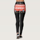 The Iconic Red London bus on personalised black fashion leggings with a road street markings pattern. The text can be changed to a name. A cool London lover’s accessory souvenir keepsake gift idea.