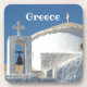ICONIC ROUND WHITE CHURCH IN GREECE COASTER
