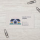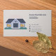 A business card with an illustration of a house in cartoon style. Contact information is decorated with icons. Perfect for real estate agent, but also for activities such as vacation rental, property manager, house cleaning, construction work, house sitting, etc.