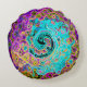 Icy Aqua Blue Groovy Abstract Retro Liquid Swirl Round Cushion