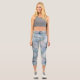 Icy Blue Floral Watercolor Botanical Pattern Capri Leggings