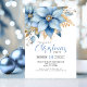 Icy Blue Gold Poinsettia Flower CHRISTMAS Party Invitation