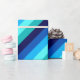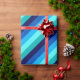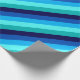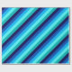A roll of wrapping paper featuring a cool pattern design of diagonal stripes in navy blue, cobalt blue, sky blue, icy mint teal, and light turquoise.