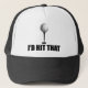 A classic golfer's gift...it's the very funny, "I'd Hit That" trucker hat! Featuring a black and white graphic of a golf ball on a tee, stuck into the grass. Choose from different hat colours, customise or personalise it, and grab yours today!
