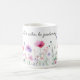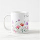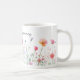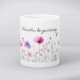 Beautiful watercolor flowers border this mug. For seasonal home decor, mugs are an easy change from cosy winter to a colourful spring aesthetic. Text can be changed. AI assisted graphic purchased with commercial license. Artwork: MokoDE