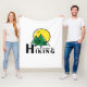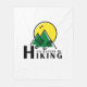 This fleece blanket is perfect for a hiking enthusiast. The graphic consists of mountains with a sun in the background and prints of hiking boots across the mountains with the words " I'd Rather Be Hiking" below.