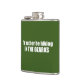 Well made flask, a little better than I had expected. Flask came in clear plastic box which gave it a nice presentation when I took it out of the zazzle packaging. Image is not printed on flask but on sticker. Don't know how this will hold up I haven't used it yet. This would make a Great gift! I plan to purchase more for friends! Cheers. I thought a little brighter than computer. Very crisp, writing wasn't