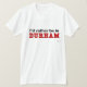 I'd Rather Be In Durham! Are you from Durham, North Carolina? Do you have a friend or family member who loves Durham, North Carolina? If so, this "I'd Rather Be In..." t-shirt is what you're looking for! The design features "I'd rather be in" in small black lettering at the top and "Durham" in big red lettering at the bottom.