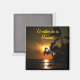 Hawaiian magnet with pretty beach sunset photo along the palm tree lined Hawaii coastline.This vacation state of mind button says I'd rather be in Hawaii. A beautiful evening shoreline view with palm trees.
