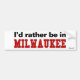 I'd Rather Be In Milwaukee! Are you from Milwaukee, Wisconsin? Do you have a friend or family member who loves Milwaukee, Wisconsin? If so, this "I'd Rather Be In..." bumper sticker is what you're looking for! The design features "I'd rather be in" in small black lettering at the top and "Milwaukee" in big red lettering at the bottom.