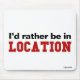 Take a look at this "I'd Rather Be In..." mousepad! Do you miss your hometown? Do you have a friend or family member who would rather be in their hometown instead of where they are now? If so, this "I'd Rather Be In..." mousepad is exactly the gift that you're looking for! The design features "I'd rather be in" in small lettering at the top and the location in big red lettering at the bottom.