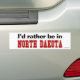 I'd Rather Be In North Dakota! Are you from North Dakota? Do you have a friend or family member who loves North Dakota? If so, this "I'd Rather Be In..." bumper sticker is what you're looking for! The design features "I'd rather be in" in small black lettering at the top and "North Dakota" in big red lettering at the bottom.