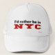 I'd Rather Be In NYC! Are you from New York City, New York? Do you have a friend or family member who loves New York City, New York? If so, this "I'd Rather Be In..." hat is what you're looking for! The design features "I'd rather be in" in small black lettering at the top and "NYC" in big red lettering at the bottom.