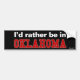 I'd Rather Be In Oklahoma! Are you from Oklahoma? Do you have a friend or family member who loves Oklahoma? If so, this "I'd Rather Be In..." bumper sticker is what you're looking for! The design features "I'd rather be in" in small white lettering at the top and "Oklahoma" in big red lettering at the bottom.