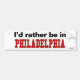 I'd Rather Be In Philadelphia! Are you from Philadelphia, Pennsylvania? Do you have a friend or family member who loves Philadelphia, Pennsylvania? If so, this "I'd Rather Be In..." bumper sticker is what you're looking for! The design features "I'd rather be in" in small black lettering at the top and "Philadelphia" in big red lettering at the bottom.