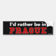 I'd Rather Be In Prague! Are you from Prague, Czech Republic? Do you have a friend or family member who loves Prague, Czech Republic? If so, this "I'd Rather Be In..." bumper sticker is what you're looking for! The design features "I'd rather be in" in small white lettering at the top and "Prague" in big red lettering at the bottom.