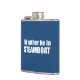 Well made flask, a little better than I had expected. Flask came in clear plastic box which gave it a nice presentation when I took it out of the zazzle packaging. Image is not printed on flask but on sticker. Don't know how this will hold up I haven't used it yet. This would make a Great gift! I plan to purchase more for friends! Cheers. I thought a little brighter than computer. Very crisp, writing wasn't
