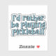 A fun typography design with the words "I'd rather be playing pickleball" in a blue retro font. The perfect gift for pickleball players.