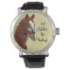 Awesome new equestrian wrist watch with a painting of a thoroughbred horse all tack up and ready to go with the caption "I'd Rather Be Riding! Any equestrian will love this watch on any occasion.