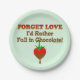 Forget love - I'd rather fall in chocolate - Funny relationship, dating, and being single Saying design. Make a funny statement with this silly one liner with an image of a juicy strawberry dipped in chocolate syrup.