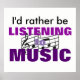 I'd rather be listening to music in black and purple text. Behind the letters are musical notes on music paper.
