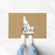 Modern farmhouse personalised doormat with your family name inside your state map. Faux burlap canvas texture background. Click Customise It to add your own text and images and create a unique one of a kind design!