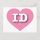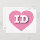 This postcard features a vibrant pink heart containing the bold, white, upper case letters ID, the official abbreviation for the state of Idaho, the gem state. The reverse side of the postcard is blank awaiting your handwritten sentiments or customised text. Choose font style, size, and colour.