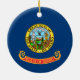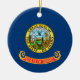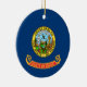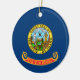 The flag of the state of Idaho consists of the state seal on a field of blue. The words “State of Idaho” appear in gold letters on a red and gold band below the seal. According to the official description of the flag, there should also be a fringe of gold around the edges, but a long time ago the versions of the flag were not shown until they remodeled the flag after War. The seal, in the centre of the flag, depicts a miner and a woman representing equality, liberty and justice. The symbols on the seal represent some of Idaho’s natural resources: mines, forests, farmland, and wildlife.