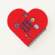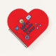 A simple red heart-shaped spiral notebook with "Ideas Made Clear" design, featuring icons like a lightbulb and gear.