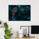 In a midnight-blue galaxy where Beethoven is the man in the moon and his "Spring Sonata" one of the drifting textures, several decorative dirigibles from a bygone era are transporting unlikely-hued violins. A few cogs and gears are also in transit, and a violin-hypsometer is taking the measure of it all. This design is also available on other items for home and office.