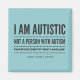 Image has the text: I am autistic / not a person with autism / please use identity first language / autism women's network" in dark grey lettering on a teal background.