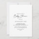 This idyllic stylish calligraphy baby shower invitation is perfect for a rustic baby shower. The simple and elegant design features classic and fancy script typography in black and white.