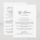 This idyllic stylish calligraphy wedding welcome letter is perfect for a rustic wedding. The simple and elegant design features classic and fancy script typography in black and white.