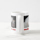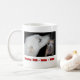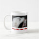 A funny image that says it all. A large white German Shepherd infringes upon a tiny little Chihuahua's space