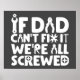 Celebrate the Mr. Fix-It in your life this Father's Day with this funny graphic that reads "If Dad Can't Fix It, We're All Screwed", featuring fun tool shapes within the lettering. Click "Personalise" to change image and background colour! | Image by Badea Mihai | Shutterstock. Image ID: 1943764870 | Shutterstock® - All Rights Reserved.