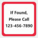 If Found, Please Call is on this bright red and white sticker. You can change the numbers to the correct phone number. The sticker is white with a red border. You can edit the text to show a personalised message.