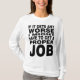 "IF IT GETS ANY WORSE I MIGHT HAVE TO GET A PROPER JOB" laid out in a bold Newspaper headline style font.