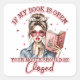 Charming illustration featuring a woman with her finger to her lips holding an open book. The colourful text reads: "If my book is open, your mouth should be closed ". This design is available on a wide variety of products.