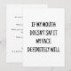 Love that there is a bit of humour with it. Quality card. Really good, clean print job