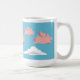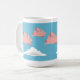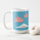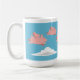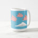 A mug depicting pigs flying over white clouds against a blue sky.