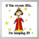 Humourous royal queen stick figure design features a queen stick figure and text that reads "If the crown fits I'm keeping it!". You'll get a kick out of these cute queen stick figure T-shirts, mugs, mousepads, cards, and other items.