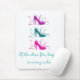 Sassy and chic If the Shoe Fits Mousepad featuring a trio of fancy high heel shoe silhouettes in fuchsia, teal, and magenta nestled in cascades of swirls and the phrase "If the shoe fits, buy one in every colour." This pretty mouse mat is perfect for the trendy fashionista with a big love of shoes! Easy to customise, add the personalised text of your choosing. Click on the "Customise It" to find more personalisation options.