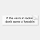 Bumper sticker with the statement "If the van's a' rockin, don't come a' knockin"