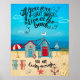 A bright coloured beach scene with an beach related quote.