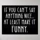 If You Can't Say Anything Nice, At Least Make It Funny. Humourous quote would make a great Christmas or birthday gift or present for someone who loves comedy, stand up comics, jokes, sarcasm and humour. Cool funny saying text design is perfect for anyone who loves snarky, sarcastic, sassy, and salty comedy and comedians.