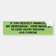 IF YOU RESPECT ANIMALS, GO VEGETARIAN. YOUR REW.. BUMPER STICKER
